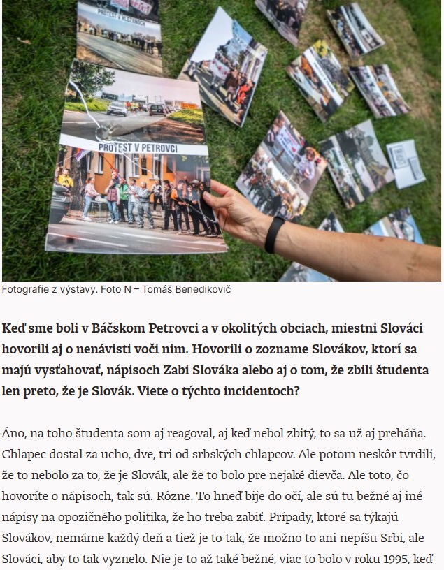 Predseda progresívcov Michal Šimečka, ktorý počas leta chýbal na viacerých dôležitých tlačových besedách, zrejme vypočul rady marketérov a minulý týždeň podstúpil strastiplnú cestu na Dolnú zem, aby zástupu svojich verných priniesol svedectvo o príkorí, ktorému údajne Slováci žijúci v Srbsku čelia. Približne v rovnakom čase cestovala do Vojvodiny aj dvojica reportérov straníckeho Denníka N, aby priniesli šokujúce svedectvá o nápisoch, v ktorých páchatelia nabádajú na vraždenie našich krajanov. Do pomyselného kolotoča dezinformácií samozrejme vstúpila všadeprítomná satirická stránka, ktorá má v názve proces, čo sa nezlučuje so životom. Skrátka a dobre, táto línia rozprávačov sa nás snaží presvedčiť, že 280 rokov po exoduse na Dolnú zem zažívajú Slováci v Báčskom Petrovci a okolí peklo na zemi.