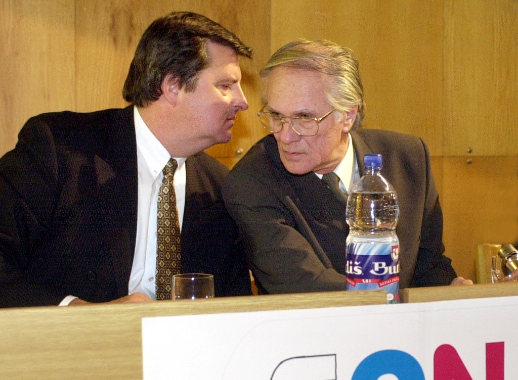 Na archívnej snímke z roku 2001 redseda SAN Štefan Dlugolinský (vľavo) a Ľudovít Števko / Foto: TASR-Vladimír Benko