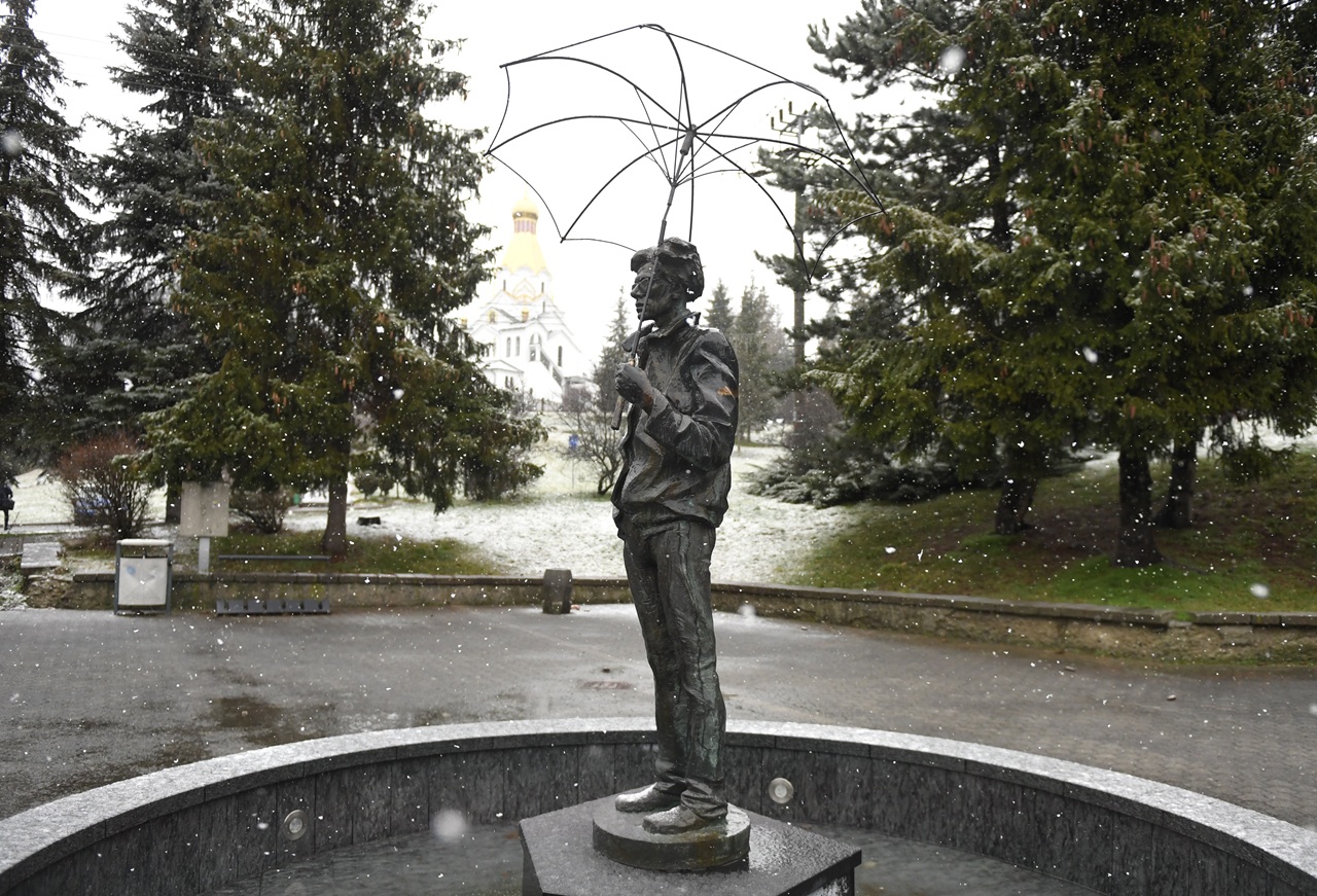 Na snímke socha Andyho Warhola s dáždnikom, ktorá je dielom akademického sochára Juraja Bartusza / Foto: TASR-František Iván