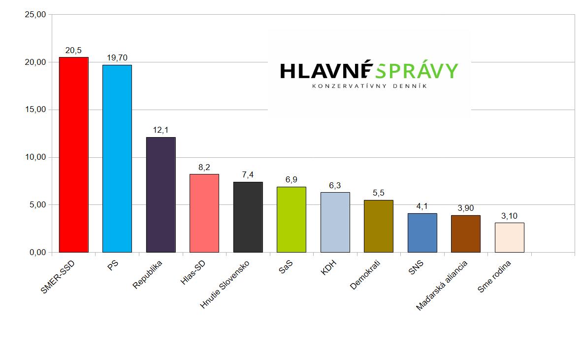 Ak by sa parlamentné voľby konali v druhej polovici apríla, zvíťazila by v nich strana Smer-SD so ziskom 20,5 percenta hlasov. Na druhom mieste skončilo Progresívne Slovensko (PS) s podporou 19,7 percenta voličov. Vyplýva to z prieskumu agentúry SANEP pre televíziu ta3