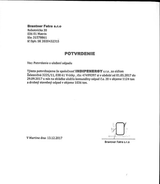 Spoločnosť INDIPENERGY s.r.o. v čase obstarávania podľa dostupných zdrojov (FinStat.sk) nemala žiadnych zamestnancov, žiadne autá na odvoz, žiadny obrat.