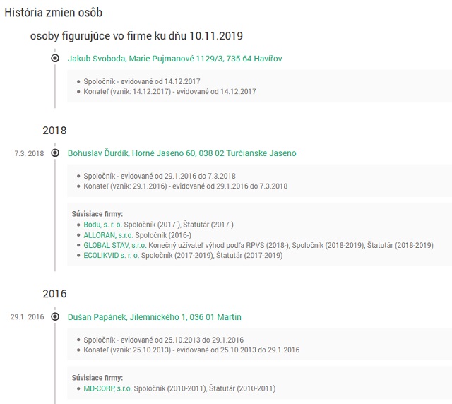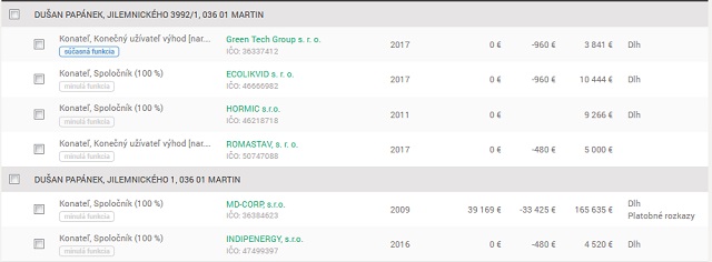 Podľa registra mal predchádzajúci vlastník a konateľ Dušan Papánek aj Bohuslav Ďurdík ďalšie spoločnosti vykazujúce dlh voči štátu.