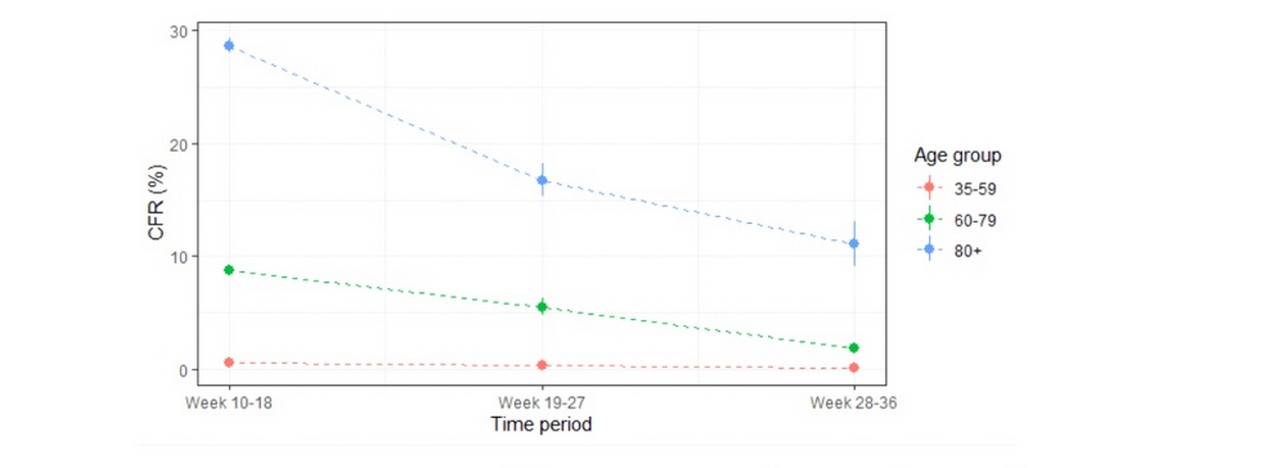 Výrazný pokles úmrtí zaznamenali aj u ľudí vo veku od 60 – 79 rokov, kde klesla z marcových 9 % na augustové 2 %. Analýza ukazuje, že smrtnosť  na  COVID-19 poklesla vo všetkých vekových kategóriách, no celkové zníženie spôsobujú najmä staršie vekové skupiny.