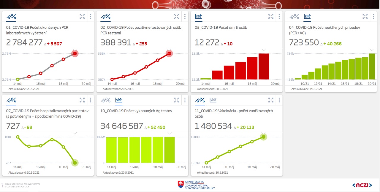 Na snímke aktualne statistiky COVID-19 k 19. máju 2021