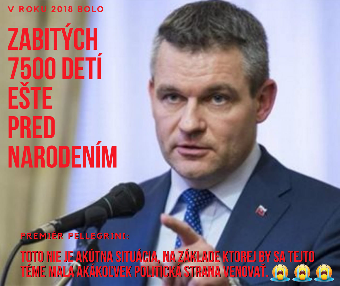 Premiér a podpredseda vládneho Smeru-SD Peter Pellegrini už v utorok povedal, že súčasná legislatíva týkajúca sa potratov je podľa neho dostačujúca. Dodal tiež, že táto téma by sa nemala iniciatívne otvárať, keďže ide skôr o politickú aktivitu. Na sociálnej sieti aktuálne koluje reakcia na slová Pellegriniho:
