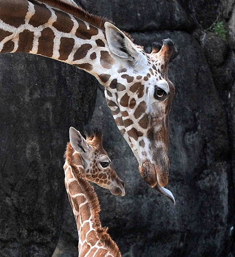 V americkom Montgomery predstavili verejnosti mláďa žirafy 22. apríla. Malá žirafa dostala meno Connie. Na snímke ju vidieť s matkou Ashley počas predstavenia