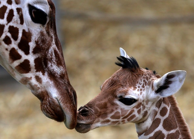 Ešte vo februári sa v ZOO v nemeckom Duisburgu narodilo matke Malindi mláďa žirafy. Na snímke má dva dni.