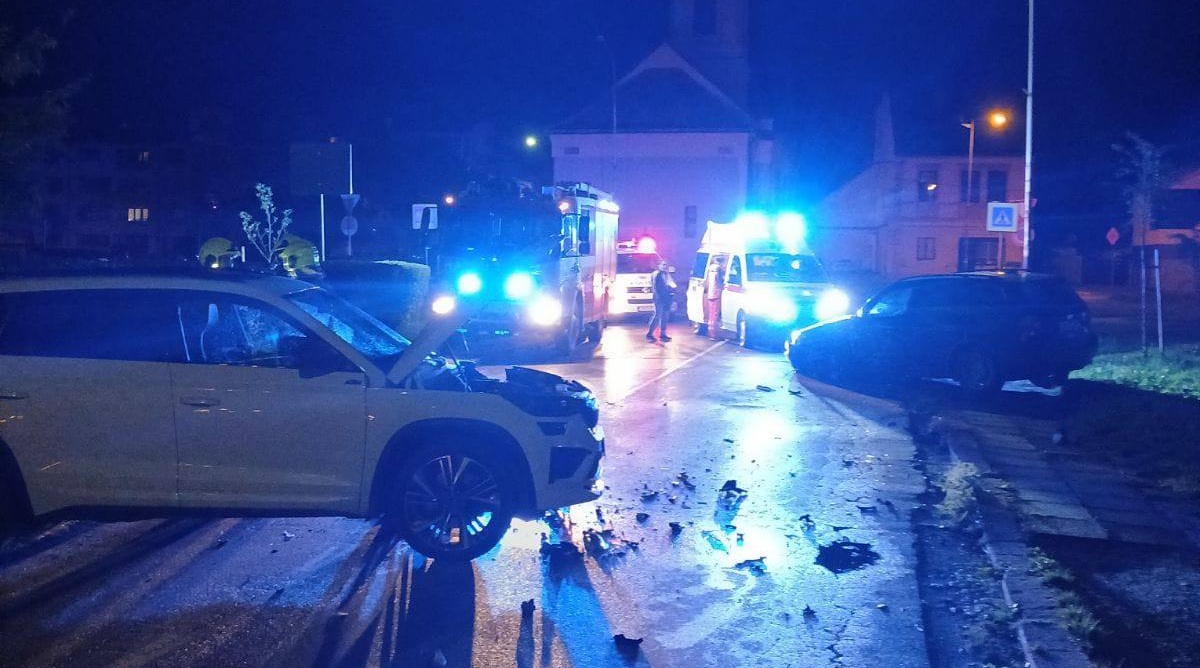 Na snímke zrážka dvoch áut v Liptovskom Mikuláši / Foto: Facebook/Hasičský a záchranný zbor – Žilinský kraj